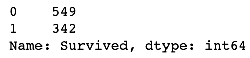 #value_counts 함수를 이용하여 생존자 인원과 사망자 인원을 확인