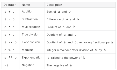 파이썬을 통해서 기본적인 사칙 연산을 할 수 있습니다. 파이썬에서 사용되는 연산자의 리스트는 아래와 같습니다. 각 연산기호를 통해서 덧셈, 뺄셈, 곱셉, 나눗셈 등을 연산할 수 있습니다.