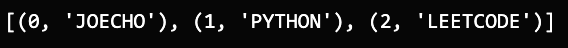 enumerate 함수 리스트 또는 tuple과 같은 collection을 입력받아 enumerate object를 생성해 줍니다. 아래의 예제를 참조부탁 드립니다.