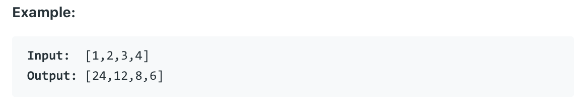 비교적 문제 자체는 이해하기 쉬우나, 조금 생각이 필요한 문제입니다. 주어진 숫자 배열(리스트)로 자신을 제외한 나머지 숫자의 곱을 배열(리스트) 반환하는 문제입니다. 그 이유는 문제의 풀이를 O(n)의 조건으로 풀이하며, 나눗셈을 이용한 풀이방법을 사용하지 않도록 제한이 있기 때문입니다.