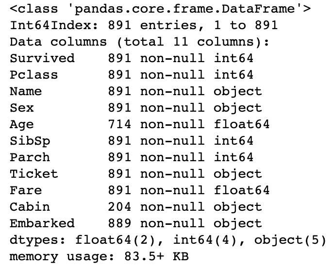 불러온 데이터의 기본정보를 info() 명령을 사용하여 출력이 가능합니다.