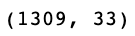 두개의 data 세트를 통합했을 경우 총 1309 rows가 되어야 합니다. 아래와 같이 Pandas의 concat함수를 통해서 두 데이터 셋트를 통합/연결할 수 있습니다. concat 함수의 axis 파라미터를 명시하지 않았는데, 기본적으로 axis 는 0, 즉 index 연결을 의미 합니다. 통합된 data (all_data)에서 drop이라는 함수를 통해서 Survived 컬럼을 제거하였습니다. 따라서 통합된 data가 (1309 X 33) 로 이루어졌습니다.