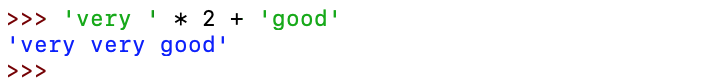 문자열과 연산자를 이용하여 동일 문자열을 반복하거나 문자열을 병합을 할 수 있습니다. * 곱셈의 연산자의 경우에는 해당 수만큼 반복을, + 연산자의 경우 두 문자열을 병합하는데 사용됩니다.