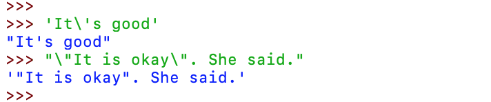 또는 큰 따옴표 안에 작은 따옴표를 삽입하거나, 작은 따옴표 안에 큰 따옴표를 삽입하여 표현 할 수도 있습니다.