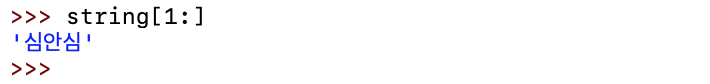 또한 마지막 구간의 인덱스를 생략하고 표현했을 경우, 문자열의 끝가지 슬라이싱하게 됩니다.